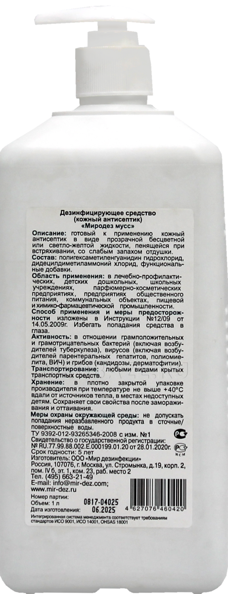 Описание: Антисептик кожный «Миродез» мусс.