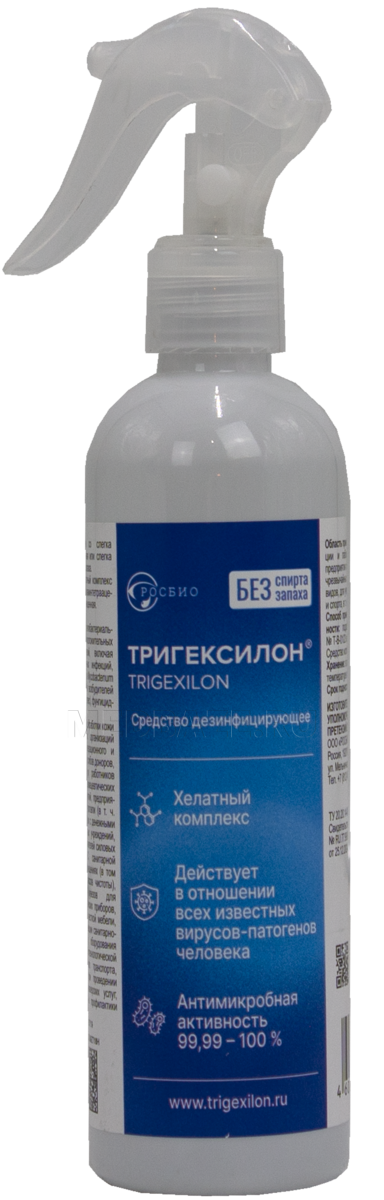 Описание: Бесспиртовой антисептик Тригексилон представляет собой водорастворимый хелатный комплекс хлоргексидиния-цинка этилендиаминтетраацетата. Препарат с хелатной формулой убивает и нейтрализует вирусы и бактерии, обладающие стойкой резистентностью к существующим дезинфицирующим средствам.