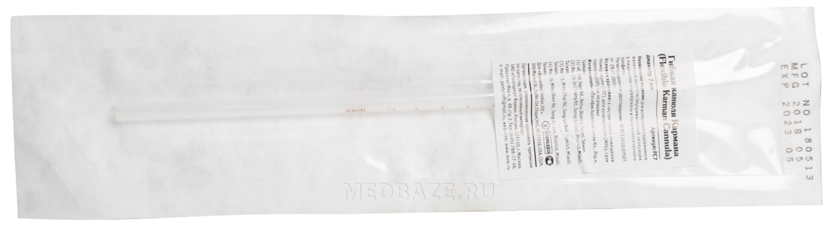 Описание: Медицинское стерильное одноразовое изделие Гибкая канюля Кармана это продолговатая гибкая трубочка из мягкого, безлатексного материала с двумя отверстиями на дистальном конце и градуированной шкалой, которая начинается на расстоянии 6 см от конца канюли и имеет шаг 1 см. Канюля Кармана является составной частью вакуумного аспиратора