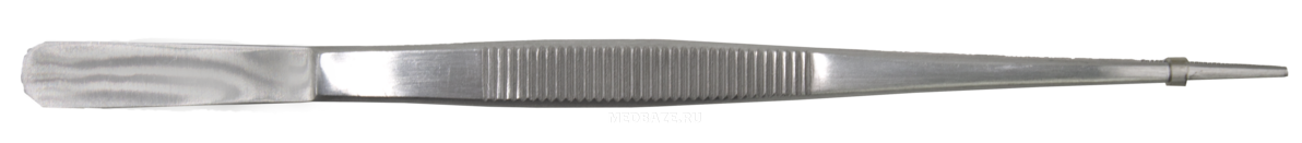 Описание: Пинцет многоразовый анатомический (ПМ-12) длиной 200 мм и шириной рабочей части 2.5 мм.