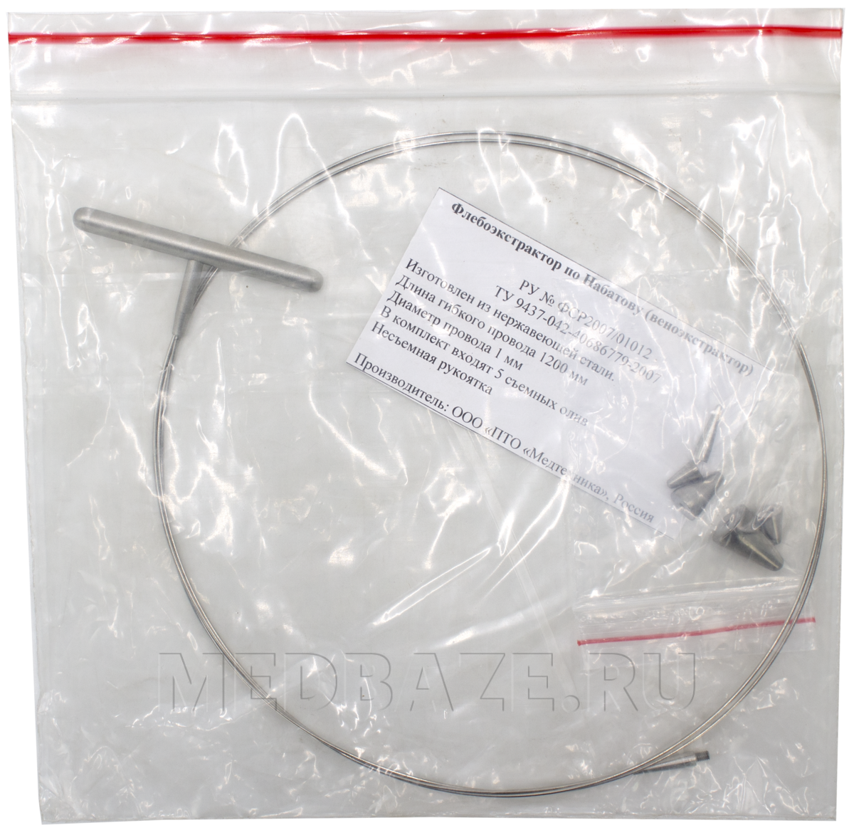 Описание: Буж-веноэкстрактор микрохирургический (по Набатову) длиной 1200 мм в комлекте с 5-ю сменными насадками. Изготовлен из нержавеющей стали.