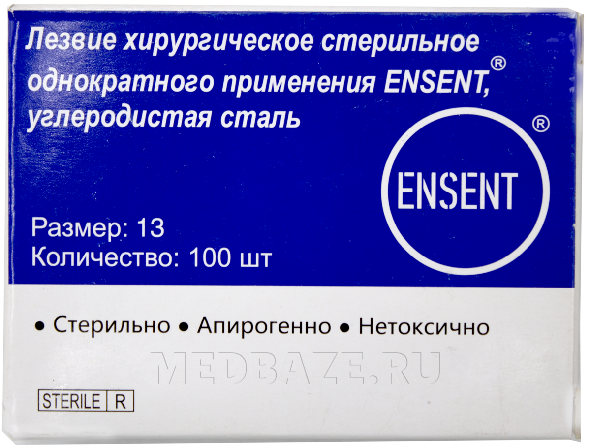 Описание: Сменные лезвия хирургическое стерильные, одноразовые, размер №13 из углеродистой стали. Острота, угол заточки и качество полировки режущей кромки стабильны по всей длине.