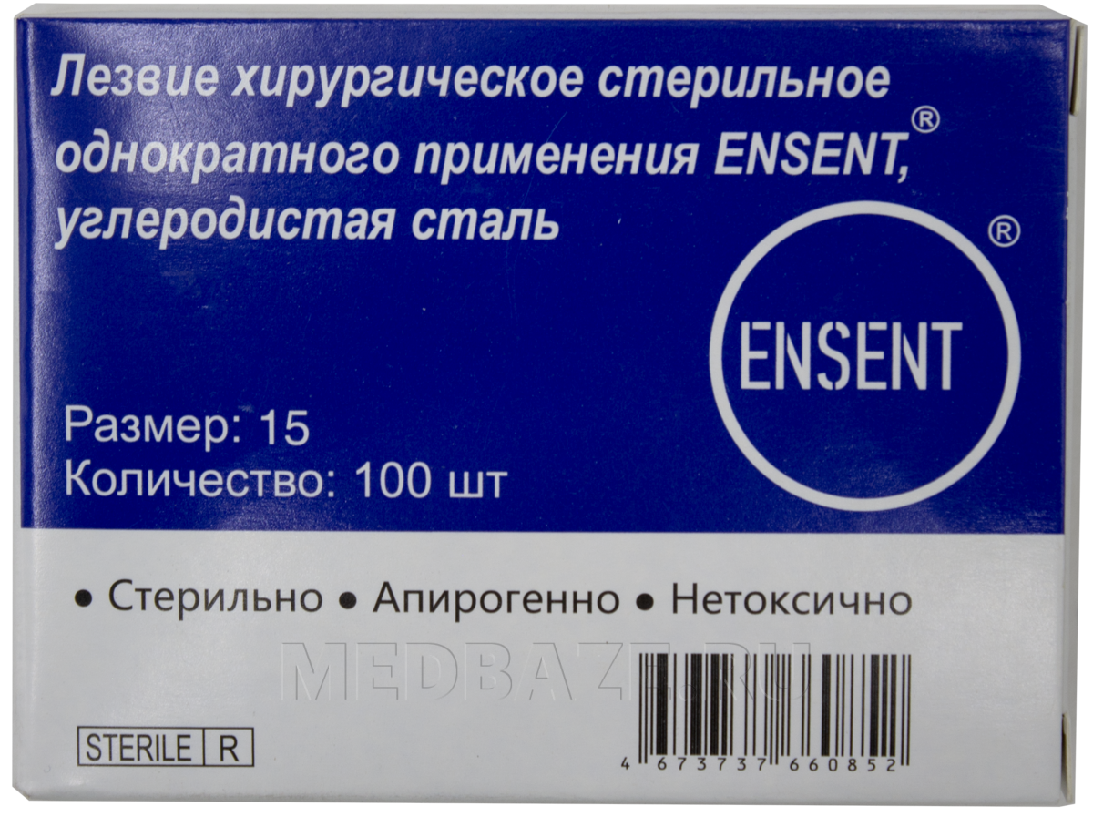 Описание: Сменные лезвия хирургическое стерильные, одноразовые, размер №15 из углеродистой стали. Острота, угол заточки и качество полировки режущей кромки стабильны по всей длине.