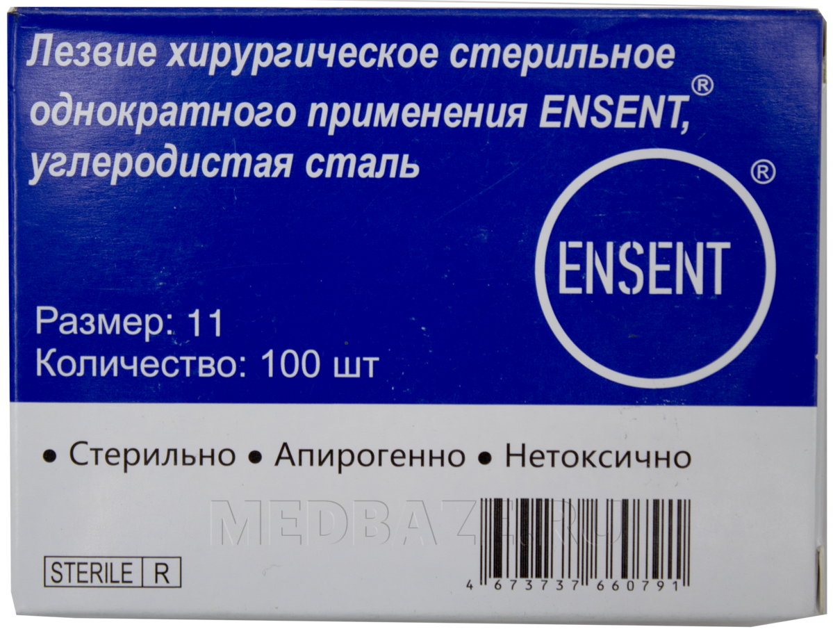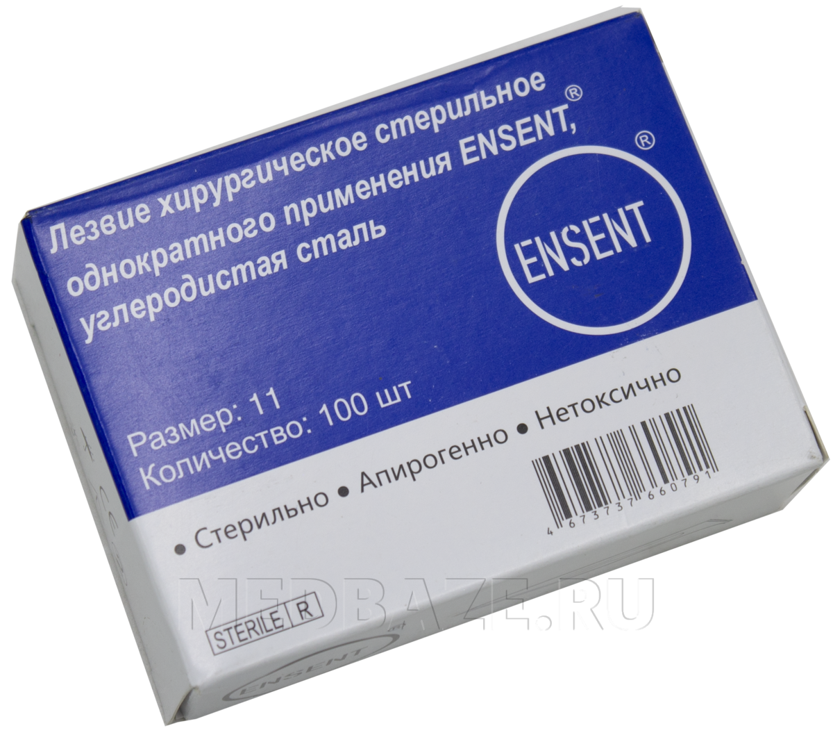 Описание: Сменные лезвия хирургическое стерильные, одноразовые, размер №11 из углеродистой стали. Острота, угол заточки и качество полировки режущей кромки стабильны по всей длине.