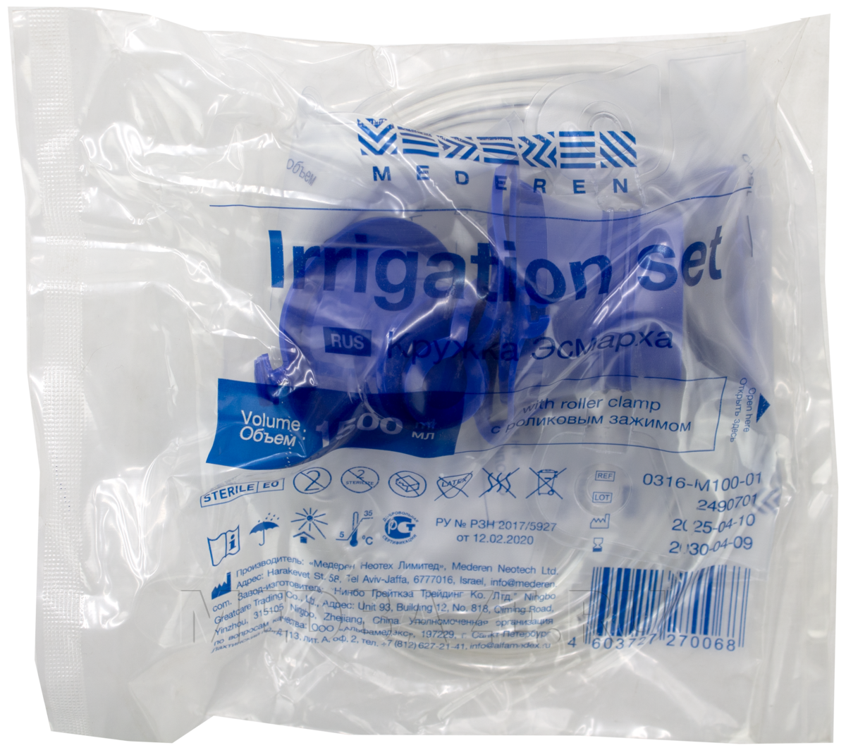 Описание: Кружка Эсмарха стерильная, одноразовая, представляет собой прозрачный мешок с измерительной шкалой, с трубкой и зажимом. На закругленный конец трубки нанесена смазка, которая способствует атравматичному использованию. Плотная крышка помогает избежать протекания. Роликовый зажим позволяет плавно регулировать поток, а запорный механизм Предназначена для быстрого прекращения введения раствора. Длина соединительной трубки 1.5 м, наружный диаметр 6.5 мм, внутренний - 4.9 мм.