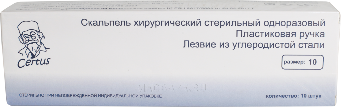 Скальпель Certus размер 10 стерильный одноразовый, 10 шт/уп