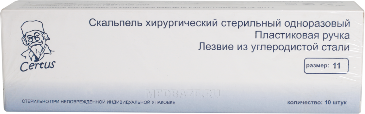 Скальпель Certus размер 11 стерильный одноразовый, в фиолетовой коробке, 10 шт/уп