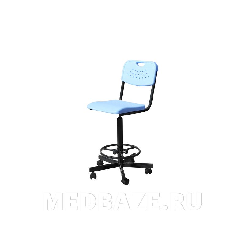Описание: Высокий стул для лабораторий с сиденьем и спинкой из антивандального пластика, модель КР20(В). Каркас стальной, пятилучевая опора, надёжный винтовой механизм изменения высоты сиденья, кольцо-опора для ног имеет регулировку по высоте.