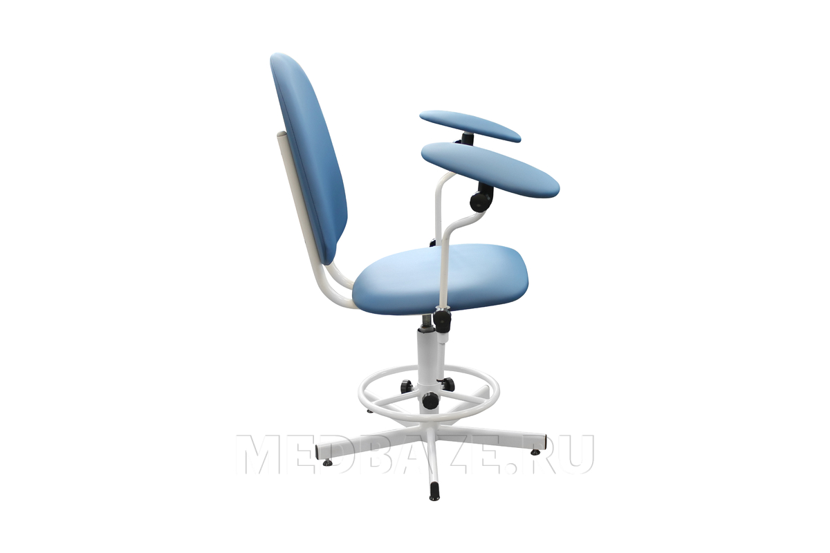 Удобные подлокотники, расположены под углом, могут регулироваться по высоте, по разлету, а мягкая часть вращается на 360 градусов. Кресло укомплектовано кольцом-опорой для ног, которое регулируется по высоте.