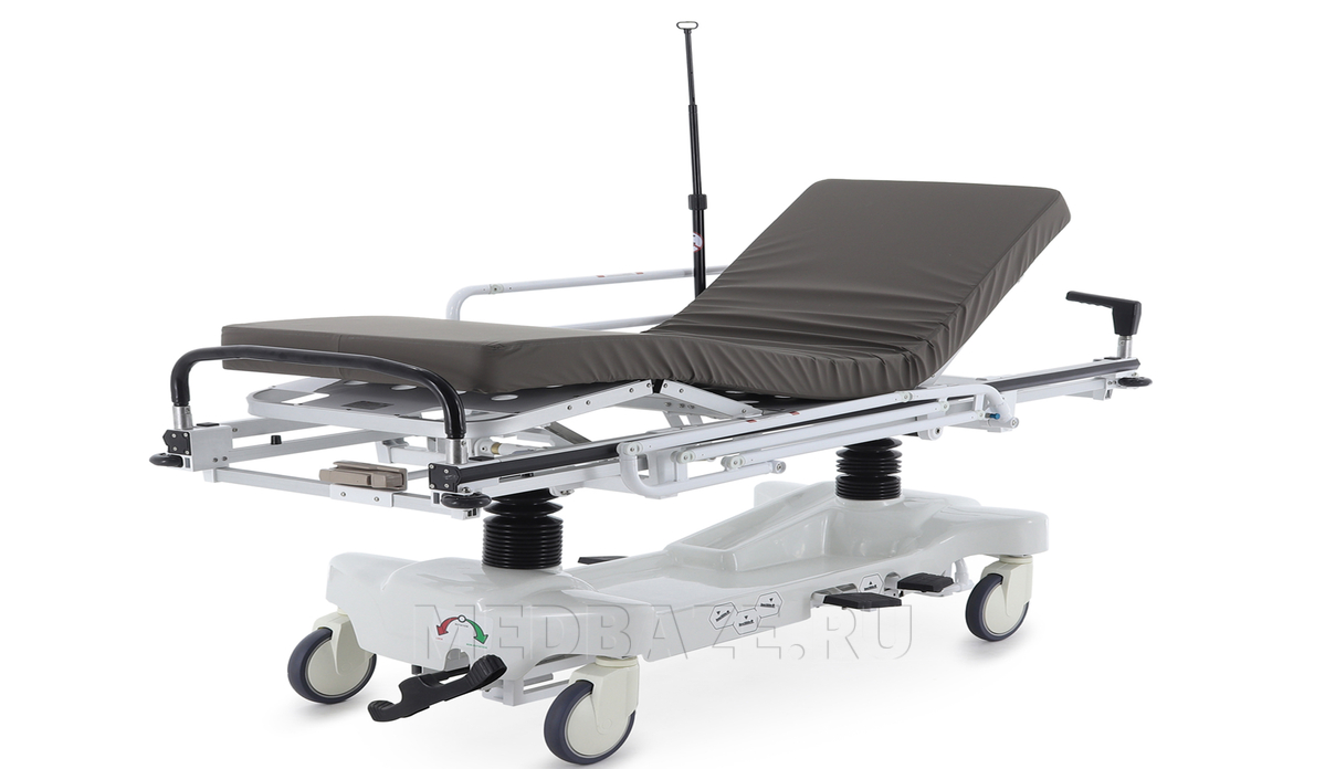 Комплектация: каталка, носилки, матрас с несъемным непромокаемым чехлом, инфузионная стойка, держатель для кислородного баллона, гидравлический привод - 2 шт.