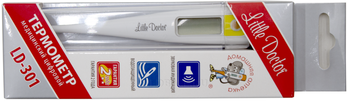 Описание: Медицинский цифровой электронный термометр LD-301 в водозащищенном корпусе, с жидкокристаллическим дисплеем. Время измерения не менее 60 сек (ректально), не менее 60 сек (орально), не менее 240 сек (подмышечно). Память на последнее измерение.