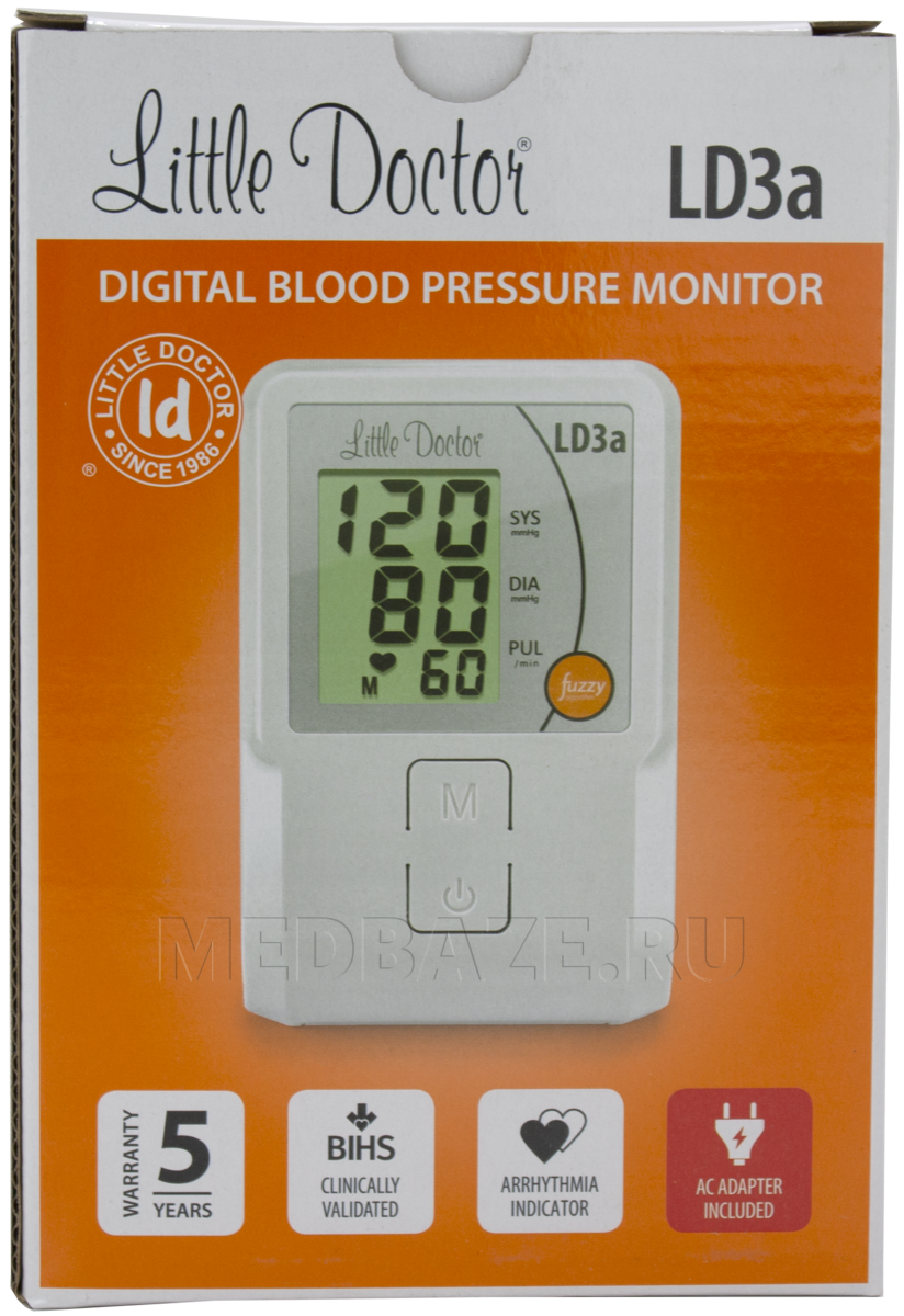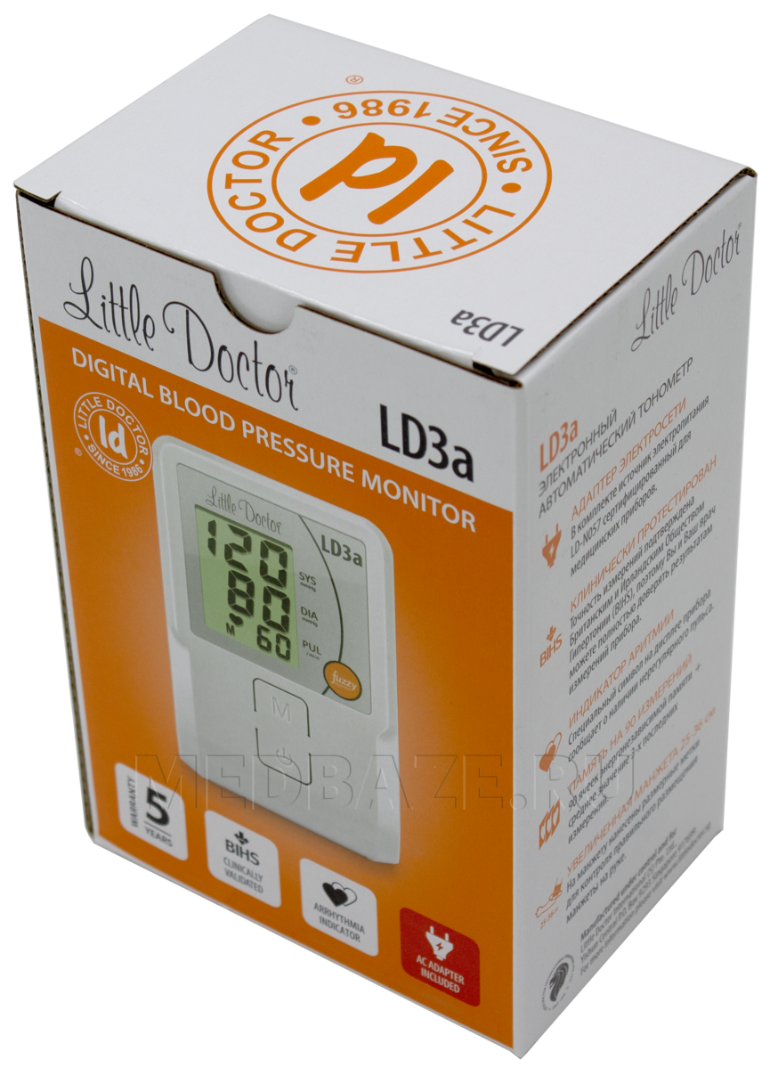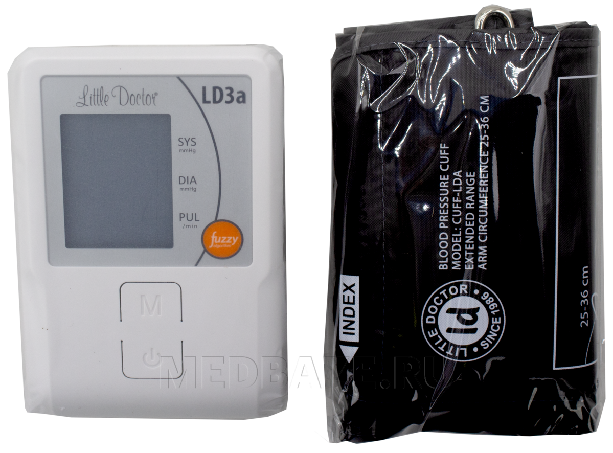 Описание: Электронный тонометр Little Doctor LD3A для пользователей с длиной окружности плеча 25-36 см, но предусмотрена возможность подключения к тонометру манжеты Little Doctor Cuff-LDA2 с обхватом плеча 32-43 см.