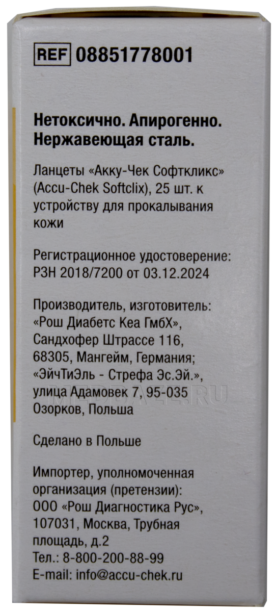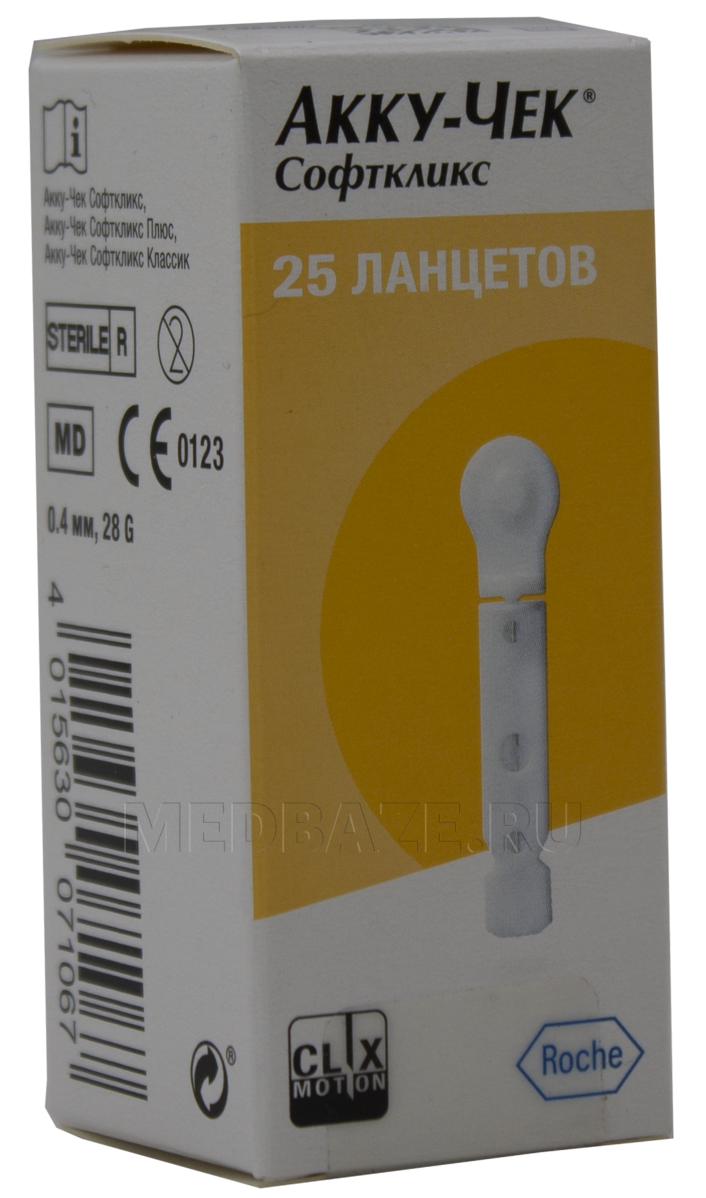 Описание: Ланцет (скарификатор) стерильный одноразовый Акку-чек софткликс представляет собой маленькую иголочку, с помощью которой производится забор крови на анализ. Имеет специальную лазерную заточку и покрыт силиконом для практически безболезненного получения капли крови. Глубина прокола от 0.8 до 2.3 мм. Размер иглы — 28G. Используются только с ручками-прокалывателями Accu Chek Softclix, Accu-Chek Softclix Classic, Softclix, Softclix Plus и Softclix 2.