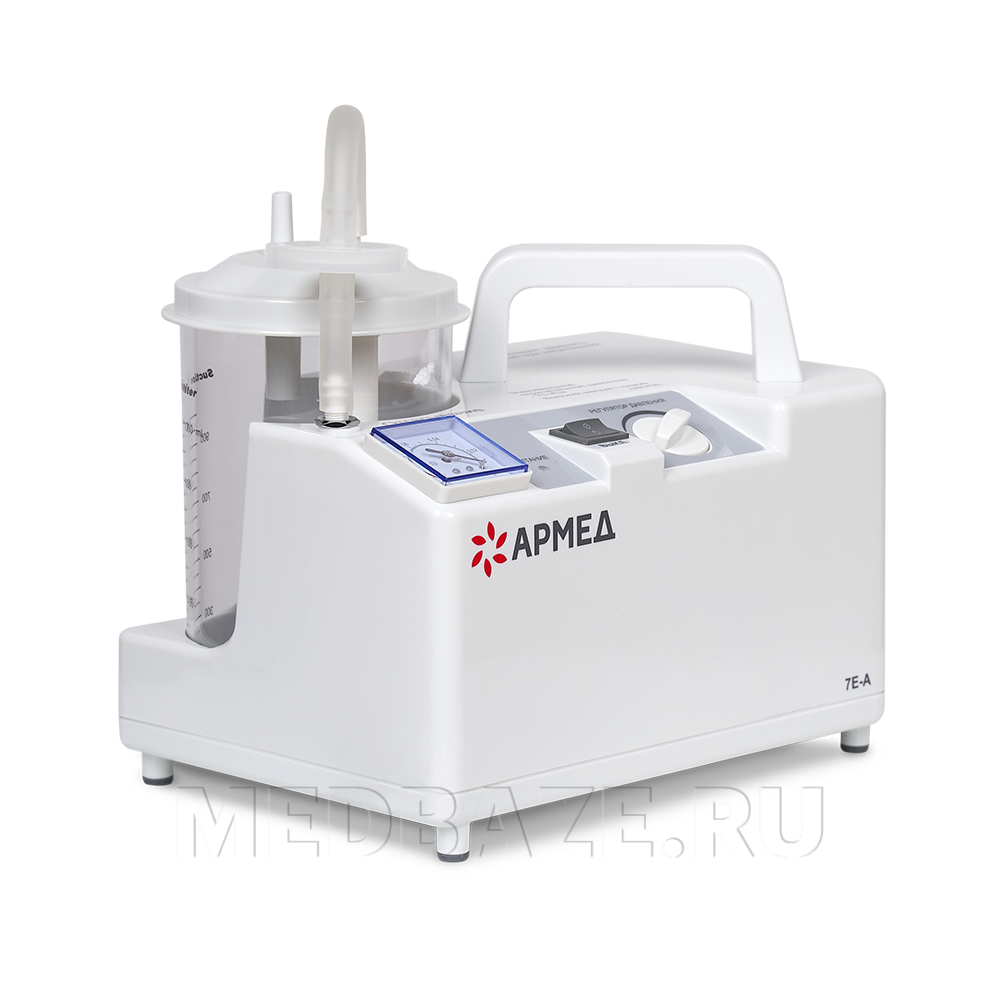 Описание: Отсасыватель хирургический электрический переносной Армед 7Е-А в пластиковом корпусе с ручкой для переноски. В комплект входят взрослый и детский катетеры.