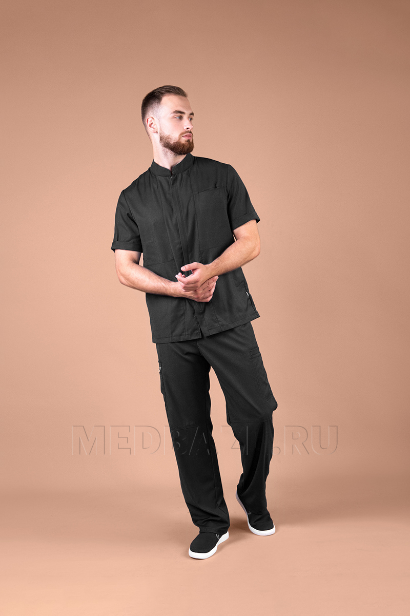В основе дизайна классический прямой крой. Ключевой особенностью является комбинированный пояс с застежкой на молнию и пуговицу спереди и эластичной вставкой сзади, который обеспечивает идеальную посадку. Конструктивный шов в области коленей создает анатомическую форму брючины, обеспечивает комфорт при ходьбе и предотвращает вытягивание ткани. Продуманная система карманов подчеркивает утилитарный характер модели.