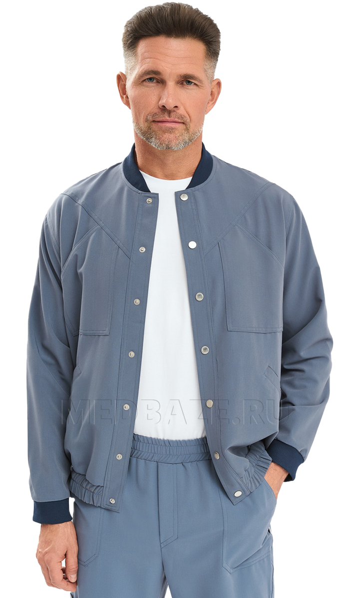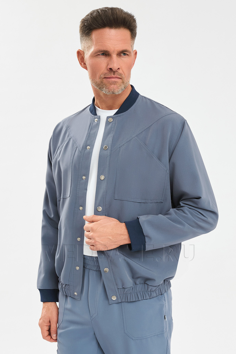 Легкий мужской бомбер на кнопках это отличное решение для медицинского гардероба! Благодаря резинке внизу, он не только обеспечивает дополнительный комфорт, но и создает аккуратный силуэт, что особенно важно в профессиональной среде.