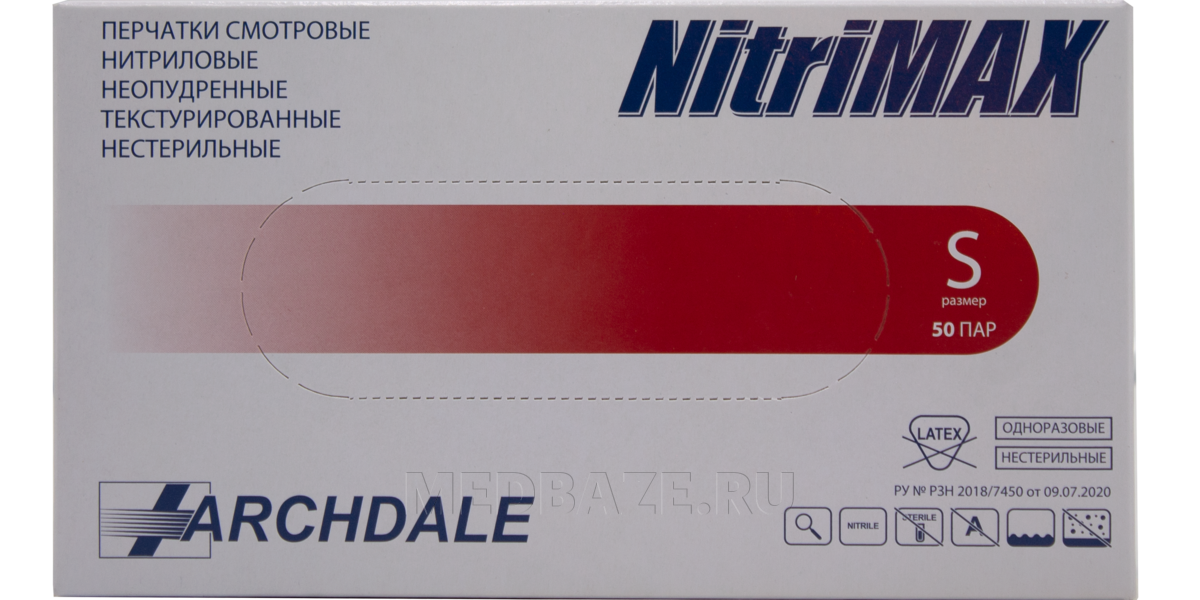 Перчатки нитриловые NitriMax, размер S, красные, 50 пар/уп