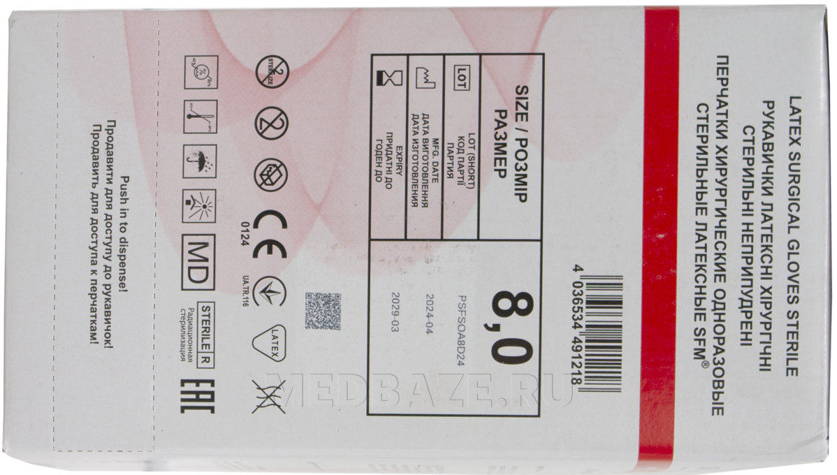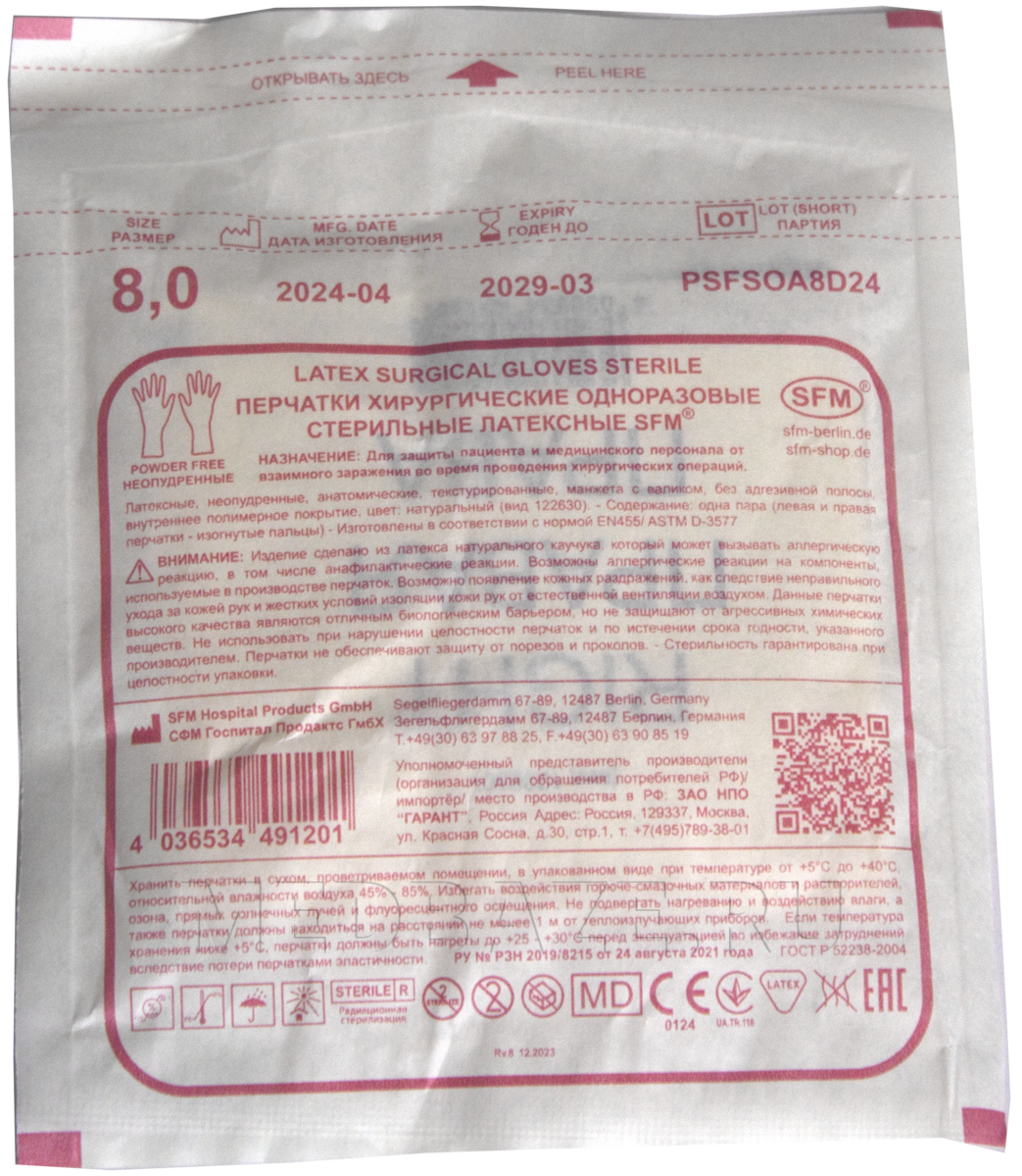 Описание: Перчатки латексные хирургические (анатомической формы), неопудренные, стерильные и упакованные в индивидуальный пакет. Очень прочные и хорошо растягиваются, благодаря чему уменьшается риск разрывов. Вся рабочая поверхность текстурированная, обеспечивает особо надежный захват инструмента в руке. Перчатки не лишены тактильной чувствительности, не меняют своих свойств в сухой и влажной среде. Могут вызывать аллергию. Изделие одноразовое.
