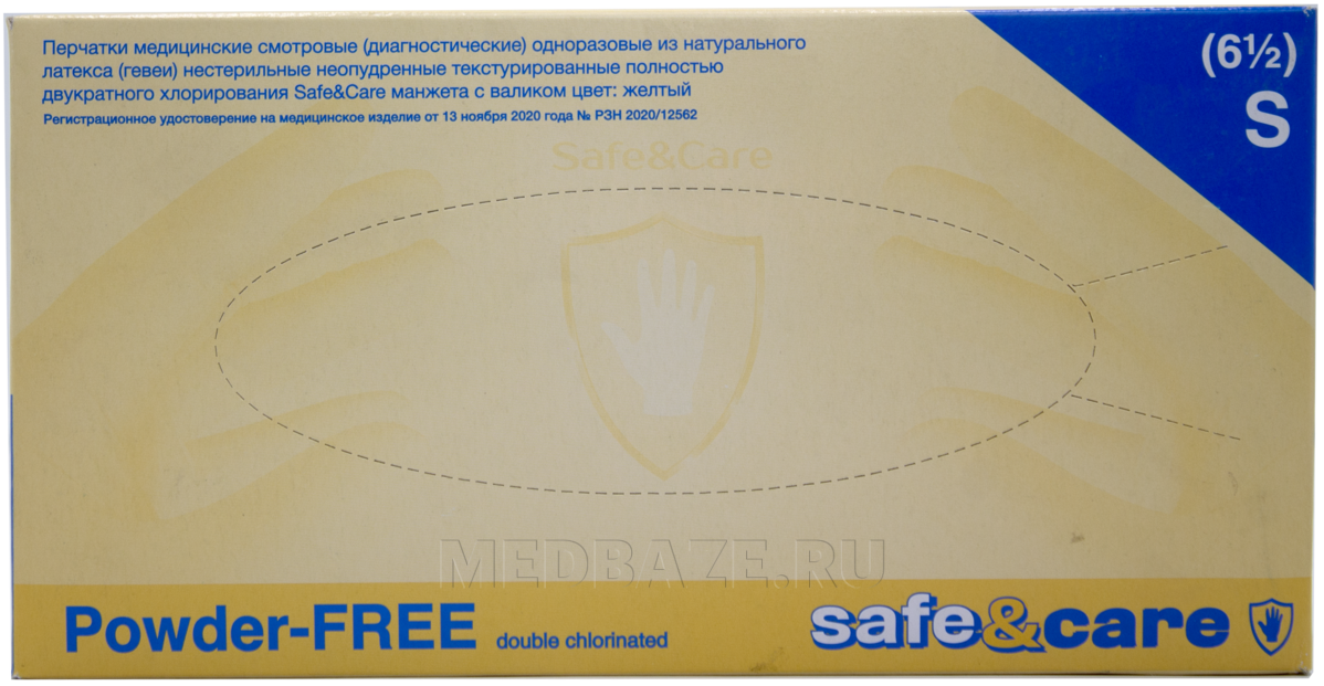 Перчатки латексные Safe&Care, размер S, двойного хлорирования (DL202), 50 пар/уп