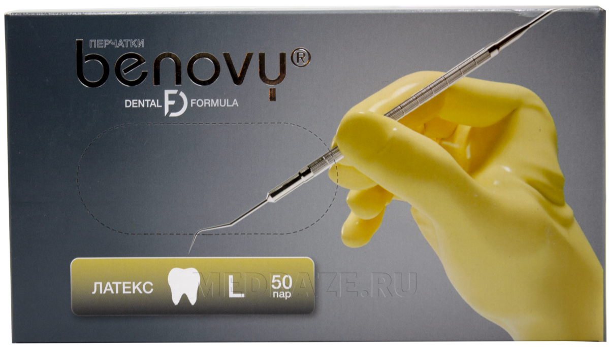Перчатки латексные Benovy, размер L (B127K4), двойного хлорирования, 50 пар/уп