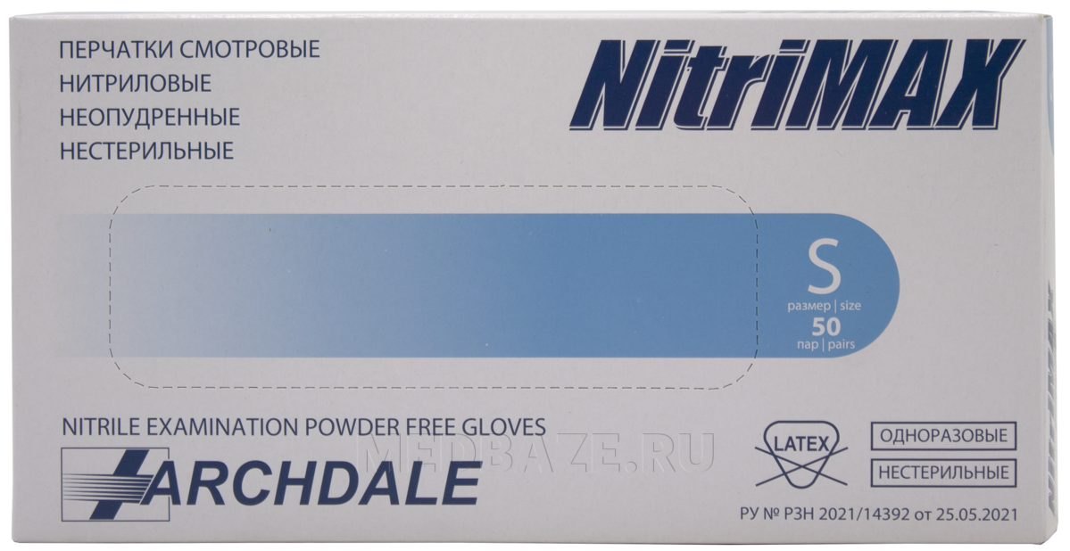 Перчатки нитриловые NitriMax, размер S, голубые, 50 пар/уп