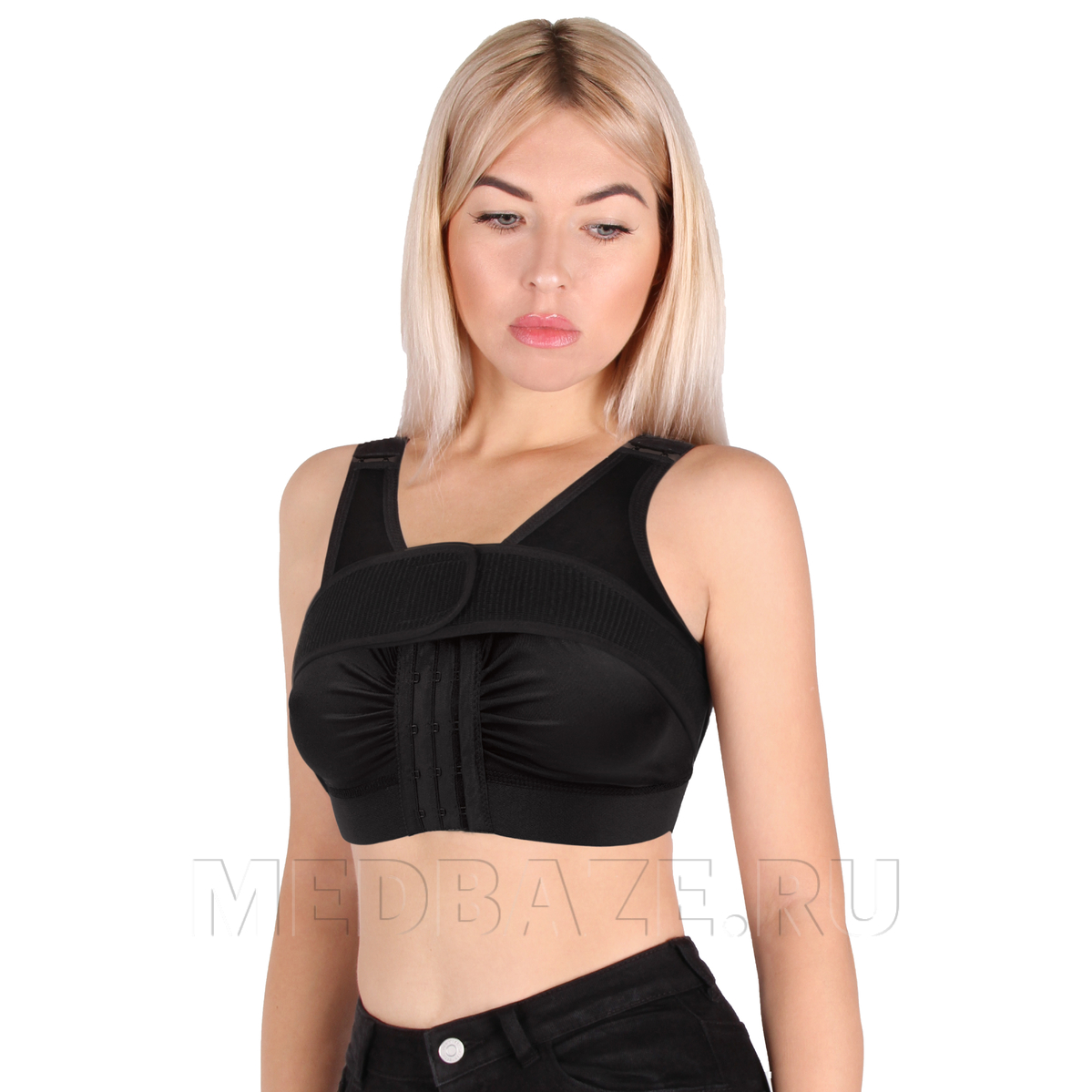 Описание: Бюстгалтер компрессионный послеоперационный ID-601 с фронтальной трехрядной застежкой на крючках, с эластичной съёмной лентой с липучкой «Велкро» для фиксации имплантов, из гипоаллергенного дышащего материала. Объем чашки от А до D. Цвета: черный, бежевый.