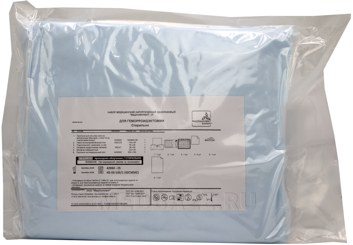 Описание: Комплект белья для геморроидектомии стерильный.