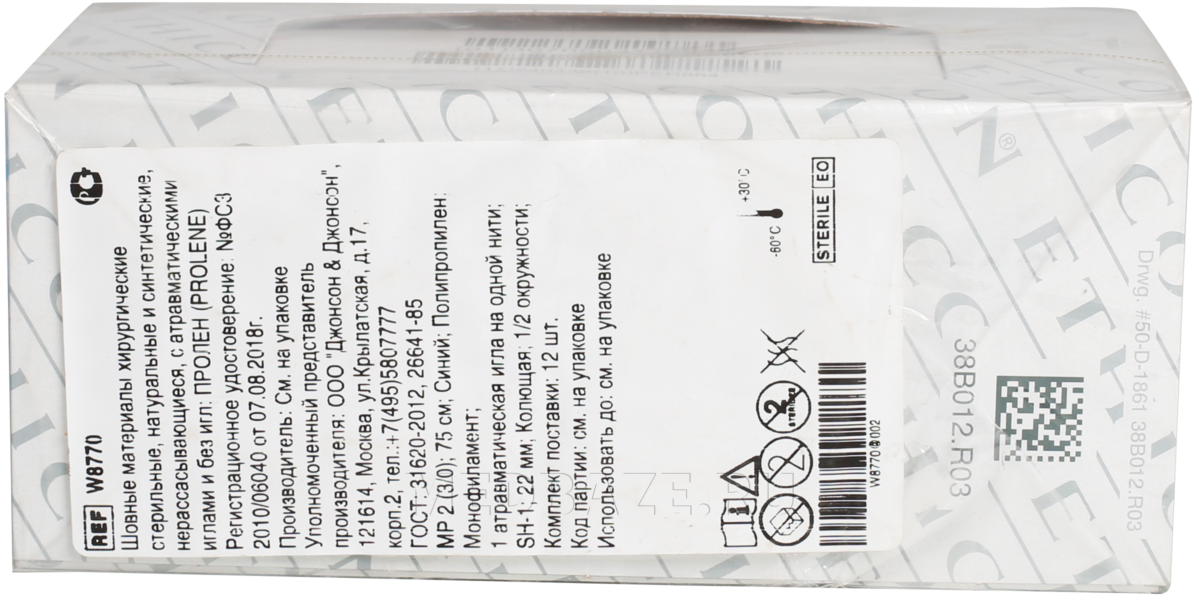 Описание: Нить стерильная хирургическая, синтетическая, нерассасывающаяся, монофиламентная, изготовленная из изотактического кристаллического стереоизомера полипропилена, синтетического линейного полиолефина. Нить не рассасывается и не подвергается деградации или ослаблению под действием ферментов в тканях, не срастается с окружающими тканями и легко снимается простым вытягиванием.