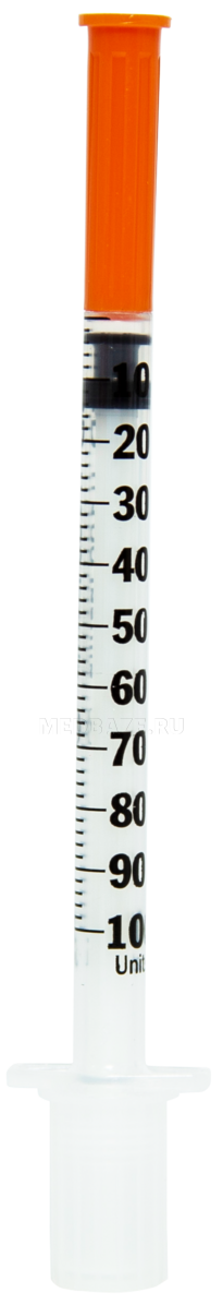 Описание: Шприц инсулиновый трехкомпонентный, с несъемной иглой. Изделие для однократного применения, стерильное. Цвет колпачка-оранжевый. Точность дозирования инсулина обеспечена крупной и нестираемой шкалой, что очень удобно для пациентов с диабетическими поражениями глаз. Изготовлен из пластика, не содержит натуральный латекс. Поршень с безопасным ограничителем хода. Предназначен для: Проведения внутримышечных, подкожных инъекций.