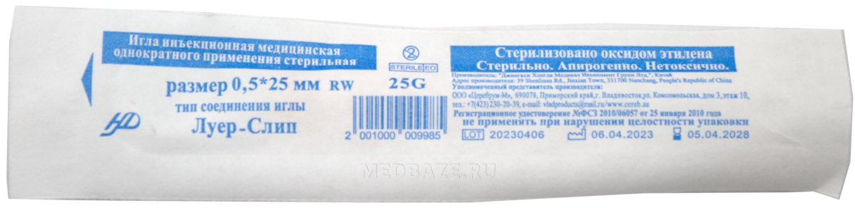Игла инъекционная Церебрум/Инфора размером 25G, изготовлена из высококачественной нержавеющей стали и медицинской пластмассы. Игла имеет трехгранную лазерную заточку и силиконовое покрытие, что обеспечивает максимальную безболезненность прокола и не требует дополнительного усилия во время инъекции. Внешний диаметр иглы составляет 0.5 мм, длина рабочей (металлической) части иглы – 25 мм. Тонкостенная игла может использоваться для шприца с креплением типа Луер-слип, Луер-лок.