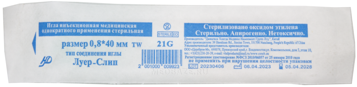 Игла инъекционная Церебрум/Инфора размером 21G, изготовлена из высококачественной нержавеющей стали и медицинской пластмассы. Игла имеет трехгранную лазерную заточку и силиконовое покрытие, что обеспечивает максимальную безболезненность прокола и не требует дополнительного усилия во время инъекции. Внешний диаметр иглы составляет 0.8 мм, длина рабочей (металлической) части иглы – 50 мм. Тонкостенная игла может использоваться для шприца с креплением типа Луер-слип, Луер-лок.