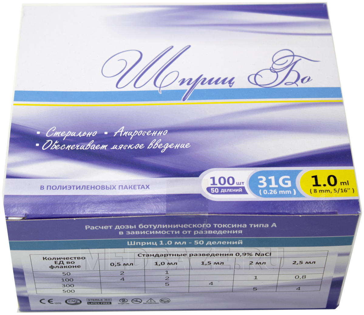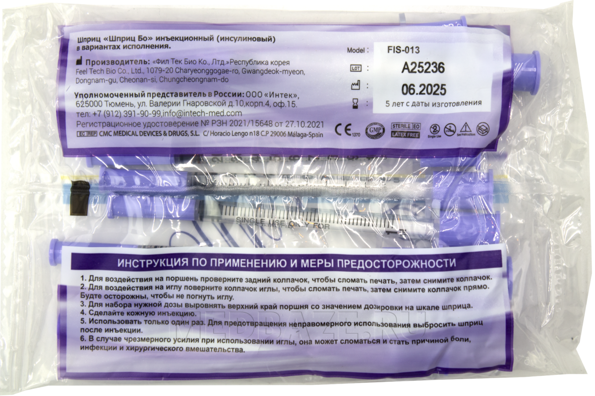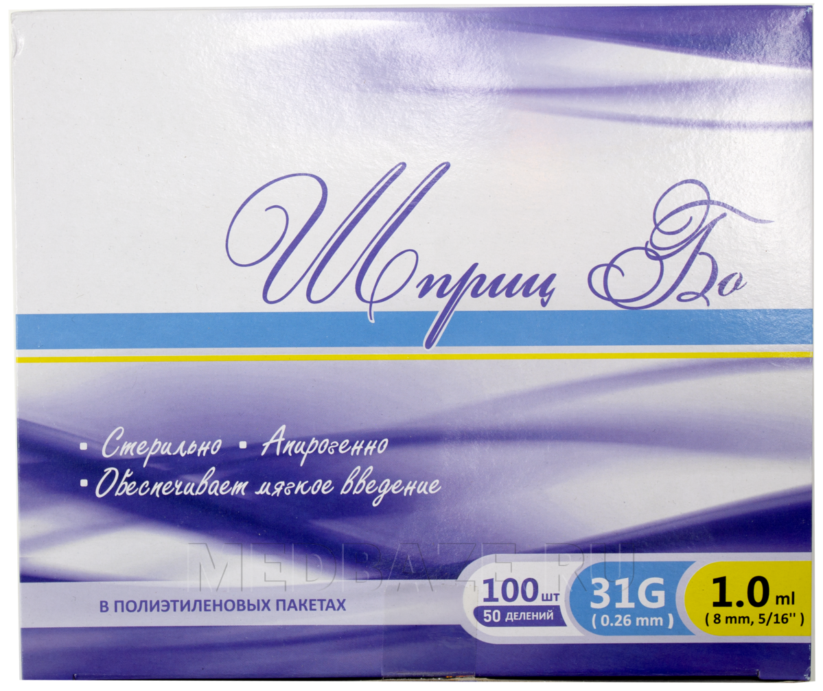 Описание: Шприц инсулиновый 3-х компонентный, одноразовый, стерильный, объемом 1.0 мл, с иглой размером 31G (0.26*8 мм), имеет прозрачный корпус и четкую градуировку. Плотно прилегающий и герметичный наконечник поршня обеспечивает отсутствие «мёртвого пространства», что гарантирует точность дозирования и снижает потери инсулина при введении. Не содержит латекса.