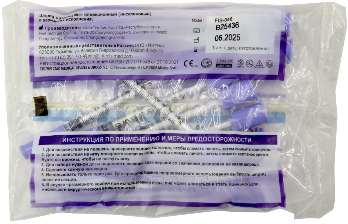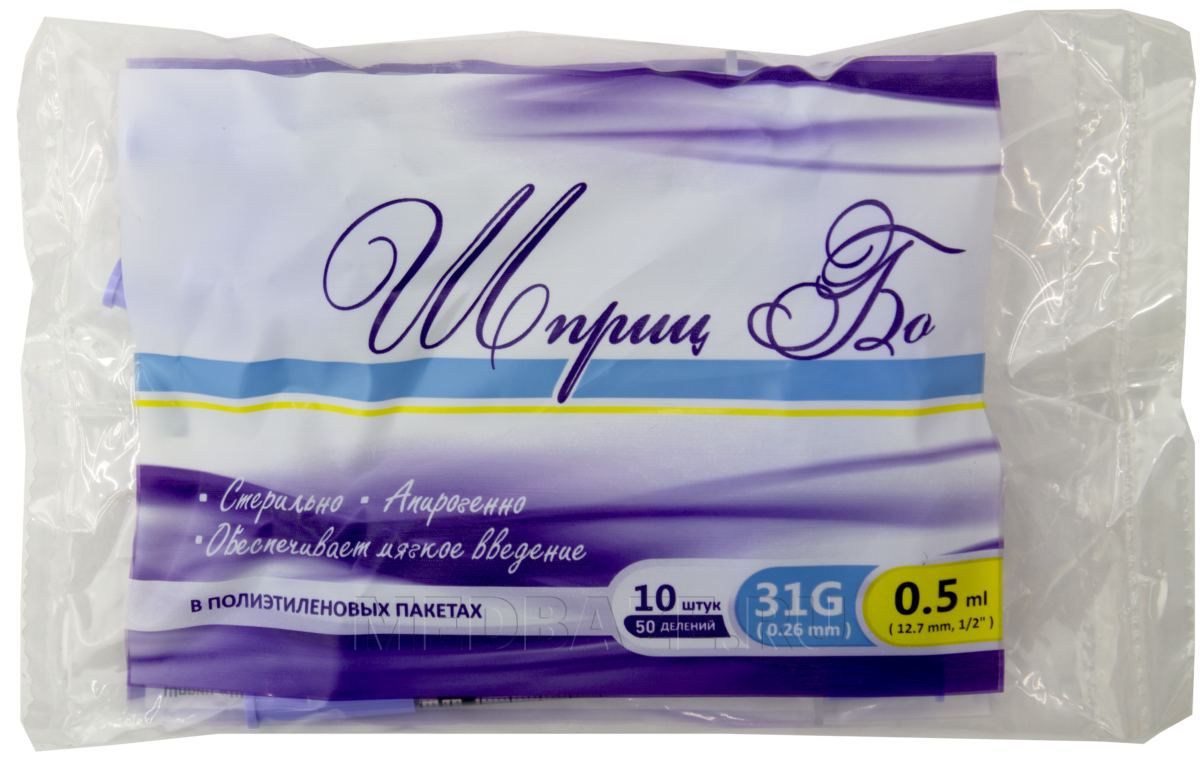 Описание: Шприц инсулиновый 3-х компонентный, одноразовый, стерильный, объемом 0.5 мл, с ультратонкой интегрированной иглой 31G (0.30*8 мм) с двойным силиконовым покрытием. Имеет прозрачный корпус и четкую градуировку U-100 (50 делений). Плотно прилегающий и герметичный наконечник поршня обеспечивает отсутствие «мёртвого пространства», что гарантирует точность дозирования и снижает потери инсулина при введении. Не содержит латекса.