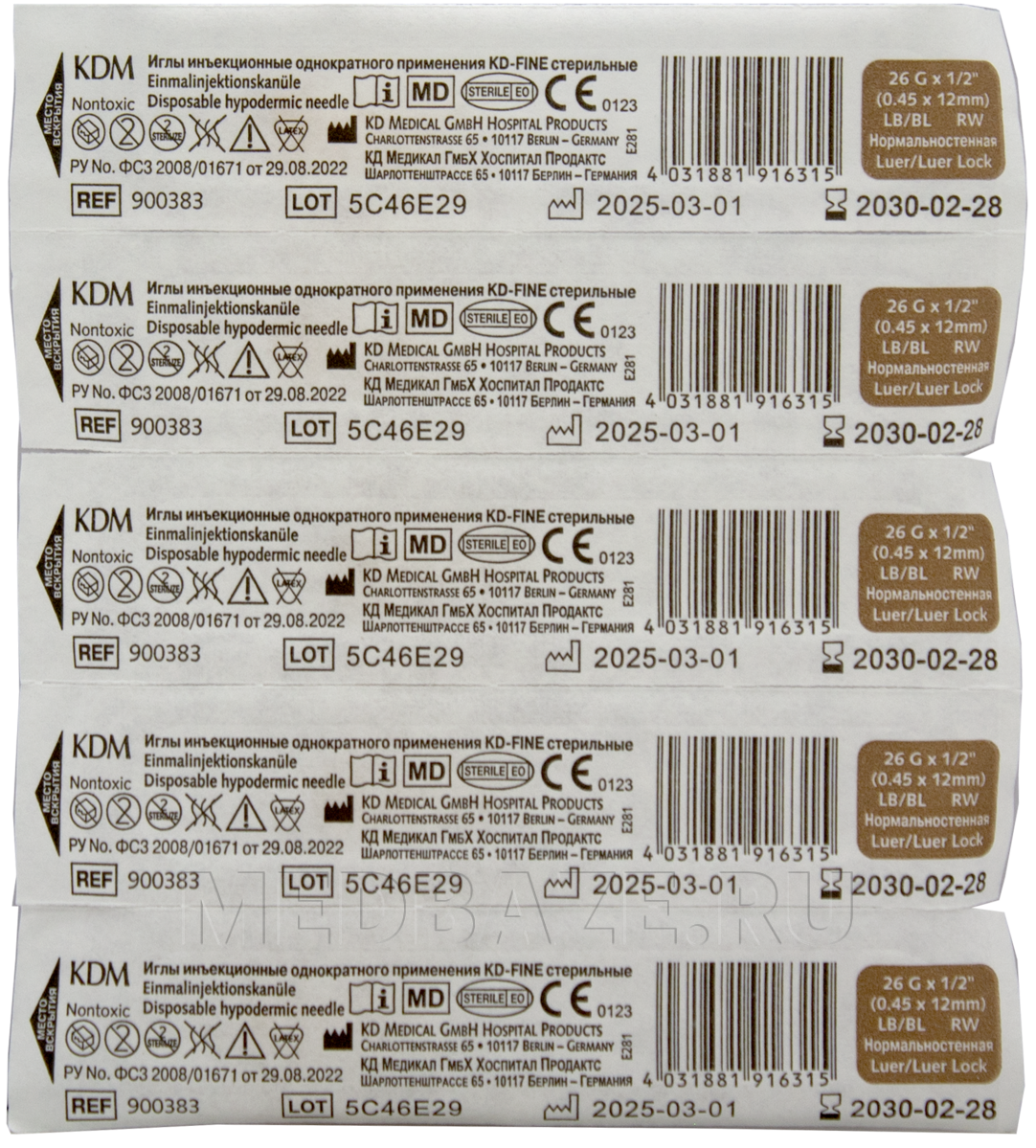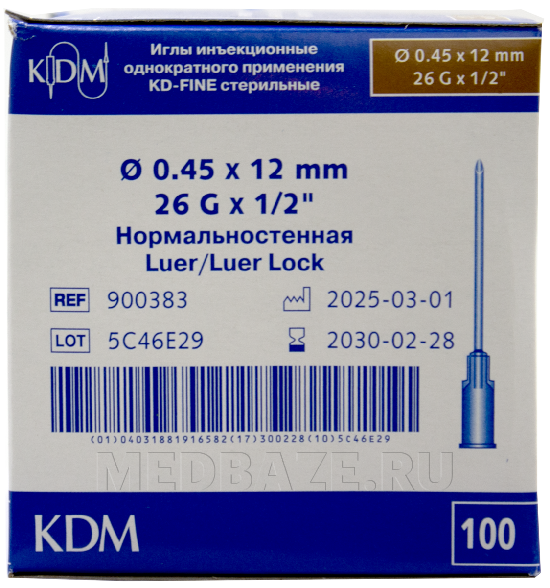 Игла инъекционная KD Medical KD-Fine одноразовая, стерильная, с тройной заточкой, с разъемом «Луер» и винтовым соединением «Луер-Лок», цветовой кодировкой канюли иглы.