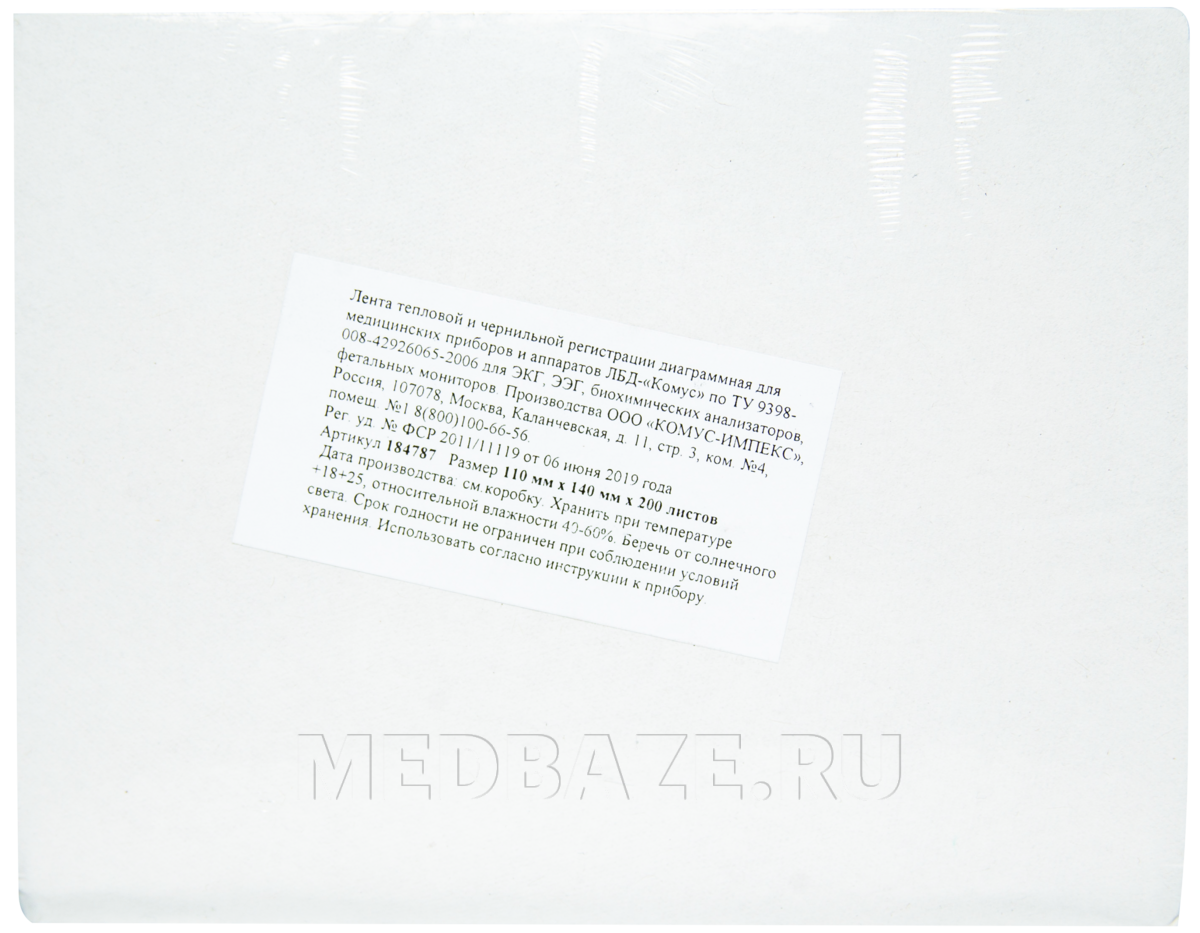 Описание: Лента тепловой и чернильной регистрации в пачке, используется для диагностической аппаратуры HelliGE Mac-800 для ЭКГ/ЭЭГ. Мелованная бумага с сеткой и отверстием на каждом листе, пл. 55 гр/м2. Толщина бумаги 60 мкм. Ширина листа 110 мм, длина сложения 140 мм, количество листов в пачке должно быть не менее 200. Листы бумаги сложены Z-образно. Предназначена для: черно-белой печати высокого качества.