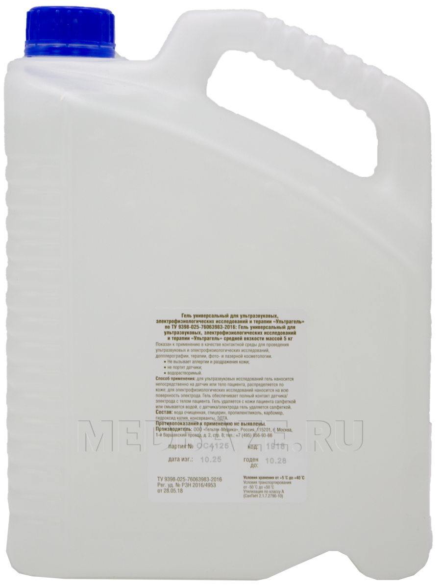 Описание: Гель для УЗИ «Ультрагель» средней вязкости бесцветный отвечает всем необходимым требованиям, предъявляемым к контактным средам для ультразвуковой диагностики и терапии: обеспечивают надежный акустический контакт,не растекаются, хорошо смачивают поверхность датчика, не оказывают раздражающего влияния на кожу пациента и разрушающего воздействия на датчики, легко удаляются с поверхности датчиков и кожи пациента влажной салфеткой. Подходит для всех ультразвуковых процедур (например, ультразвуковой диагностики, эхокардиографии и т.п.) и электрофизиологических процедур (ЭКГ, ЭЭГ, РЭГ).