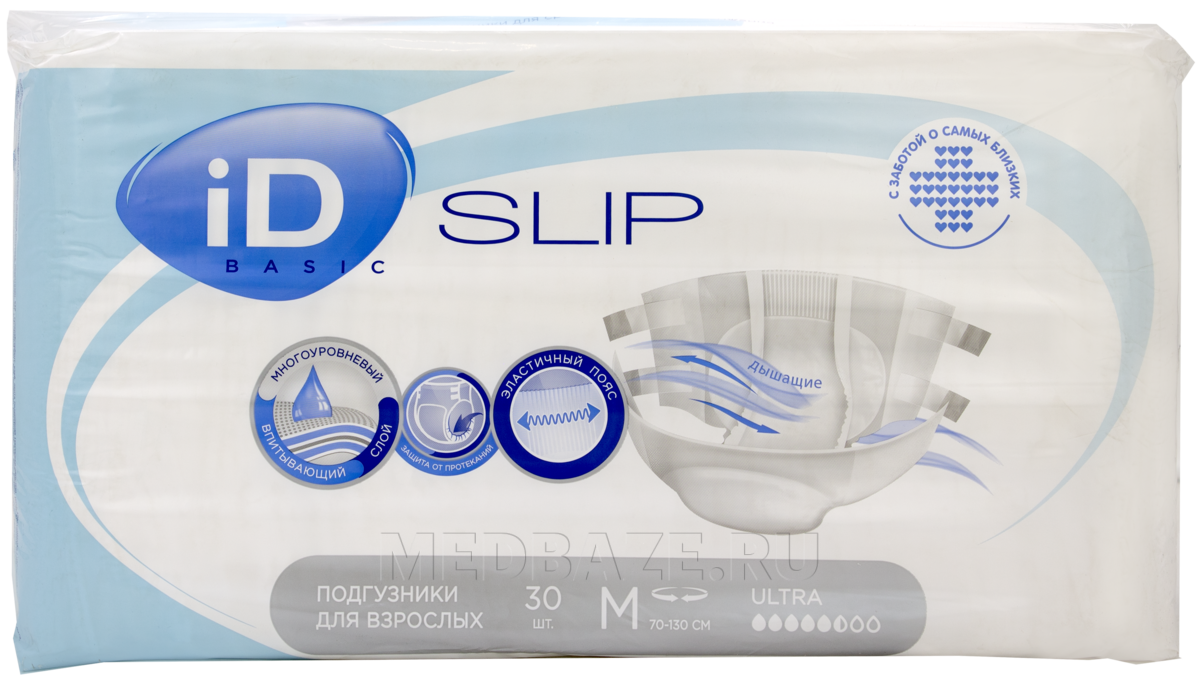 Подгузники для взрослых iD Slip Basic Ультра, размер M, Ontex, 30 шт/уп