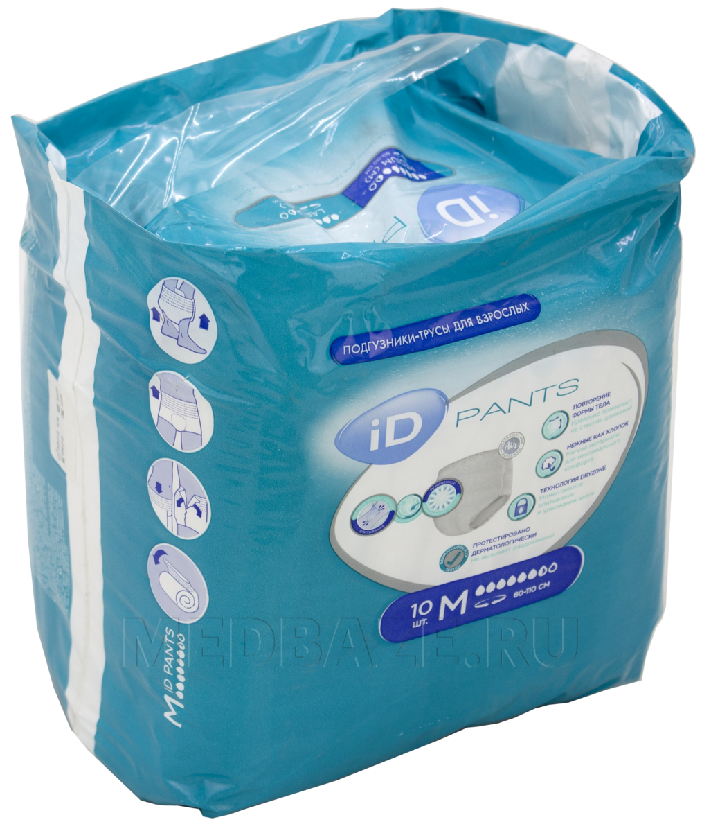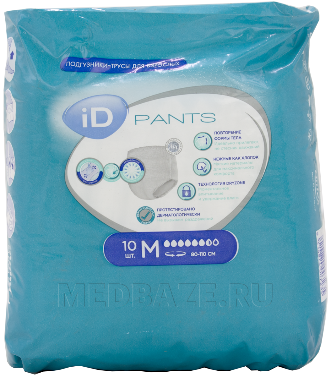 Подгузники-трусы для взрослых iD Pants, размер M, Ontex, 10 шт/уп