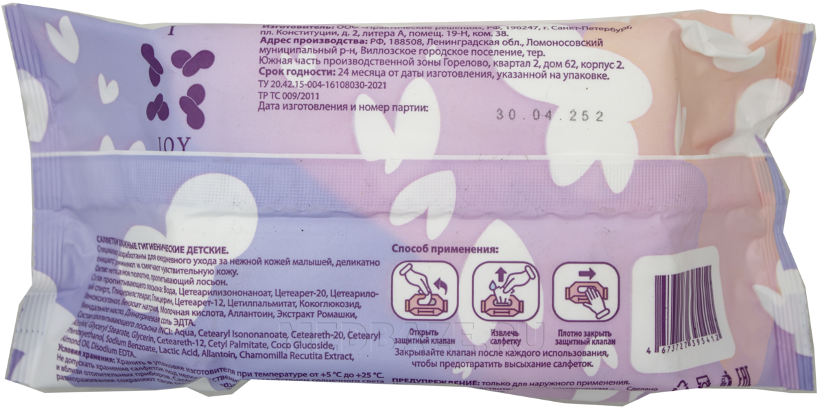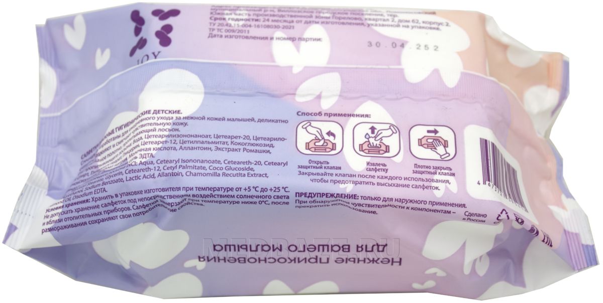 Описание: Детские влажные салфетки без отдушки Joy безопасны для чувствительной детской кожи и подходят для ежедневной гигиены. Салфетки бережно очищают, увлажняют, смягчают и защищают кожу ребенка как дома, так и на прогулке. Гипоаллергенны, не вызывают аллергии, содержат экстракт ромашки и витамины группы Е, К.