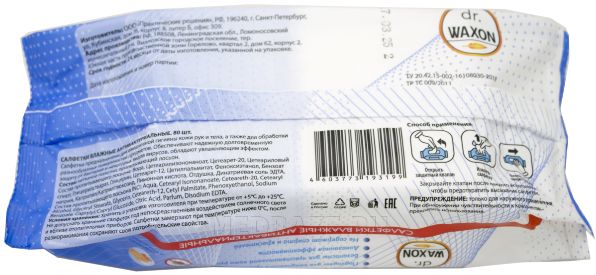 Описание: Салфетки влажные dr.Waxon Everyday Care антибактериальные отлично подходят для ежедневной гигиены кожи рук и тела, а также обработки поверхностей различных предметов. Обладают увлажняющим эффектом. Убивают 99.9% микробов, вирусов, бактерий и грибов.
