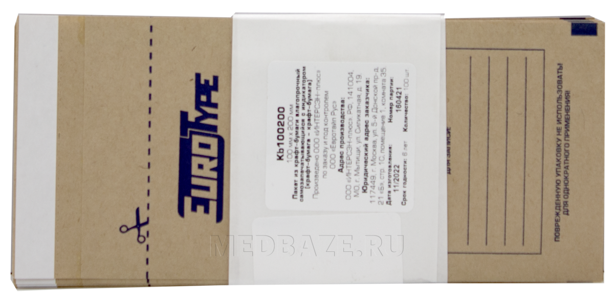 Описание: Пакет из крафт-бумаги самоклеящийся. Изделие для однократного применения. На пакеты нанесены цветные химические индикаторы первого класса, позволяющие отличить простерилизованные изделия от изделий, не подвергнутых стерилизационной обработке. На клапане пакета имеется клеевая полоса для самозапечатывания.