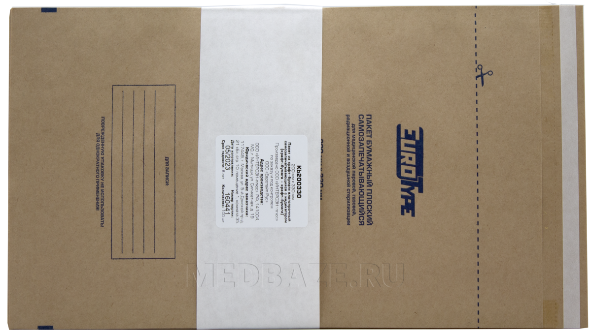 Описание: Пакет из крафт-бумаги самоклеящийся. Изделие для однократного применения. На пакеты нанесены цветные химические индикаторы первого класса, позволяющие отличить простерилизованные изделия от изделий, не подвергнутых стерилизационной обработке. На клапане пакета имеется клеевая полоса для самозапечатывания.