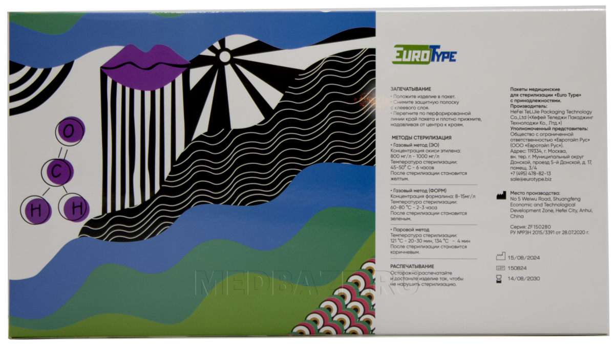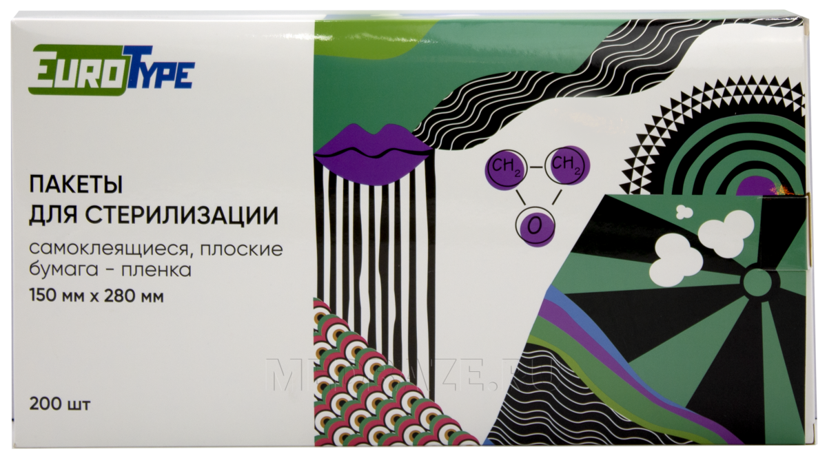 Пакет для стерилизации самоклеющийся (пленка) 150*280 мм, EuroType, 200 шт/уп
