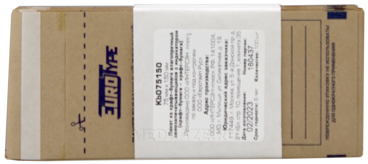 Пакет для стерилизации самоклеющийся (крафт) 75*150 мм, EuroType, 100 шт/уп