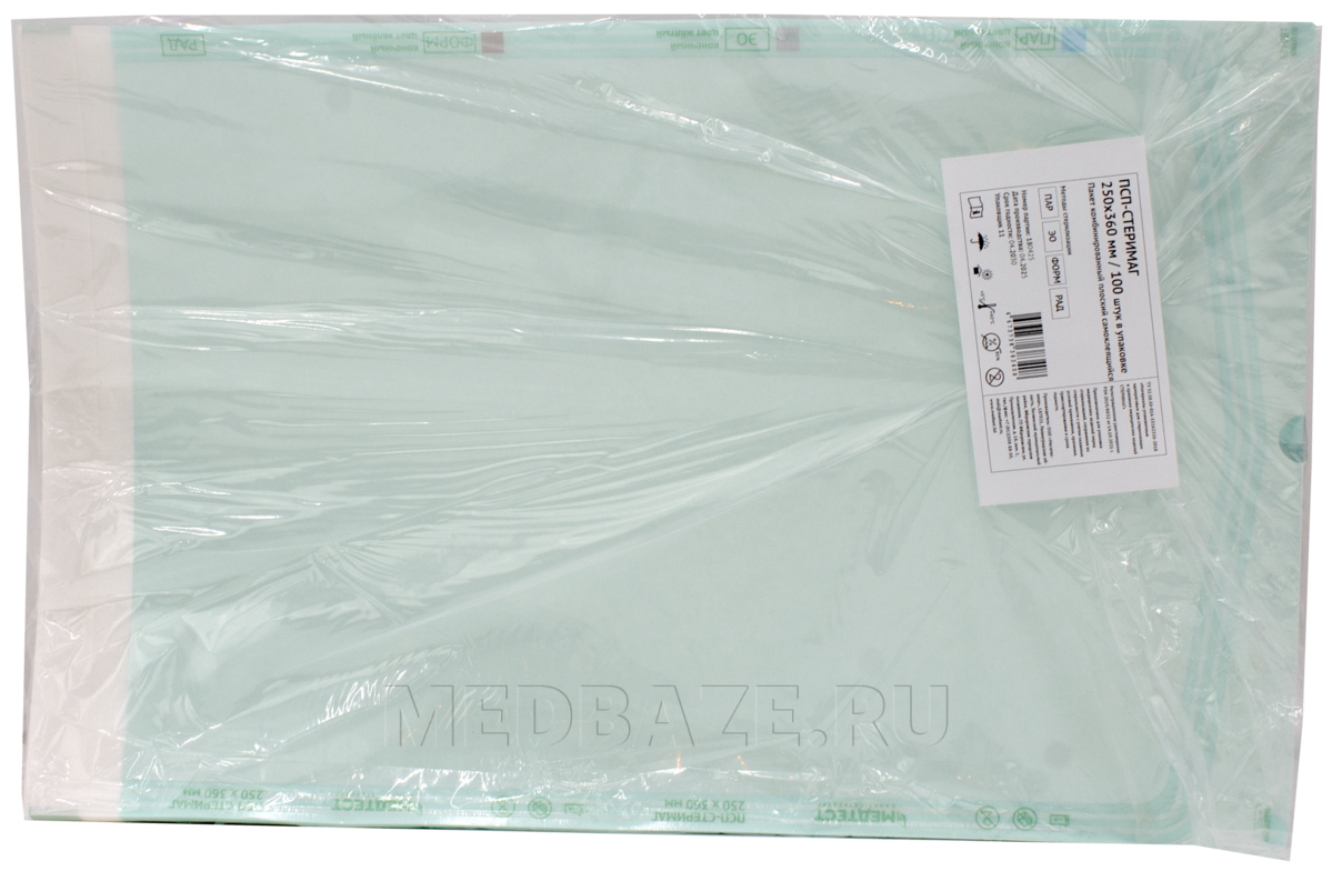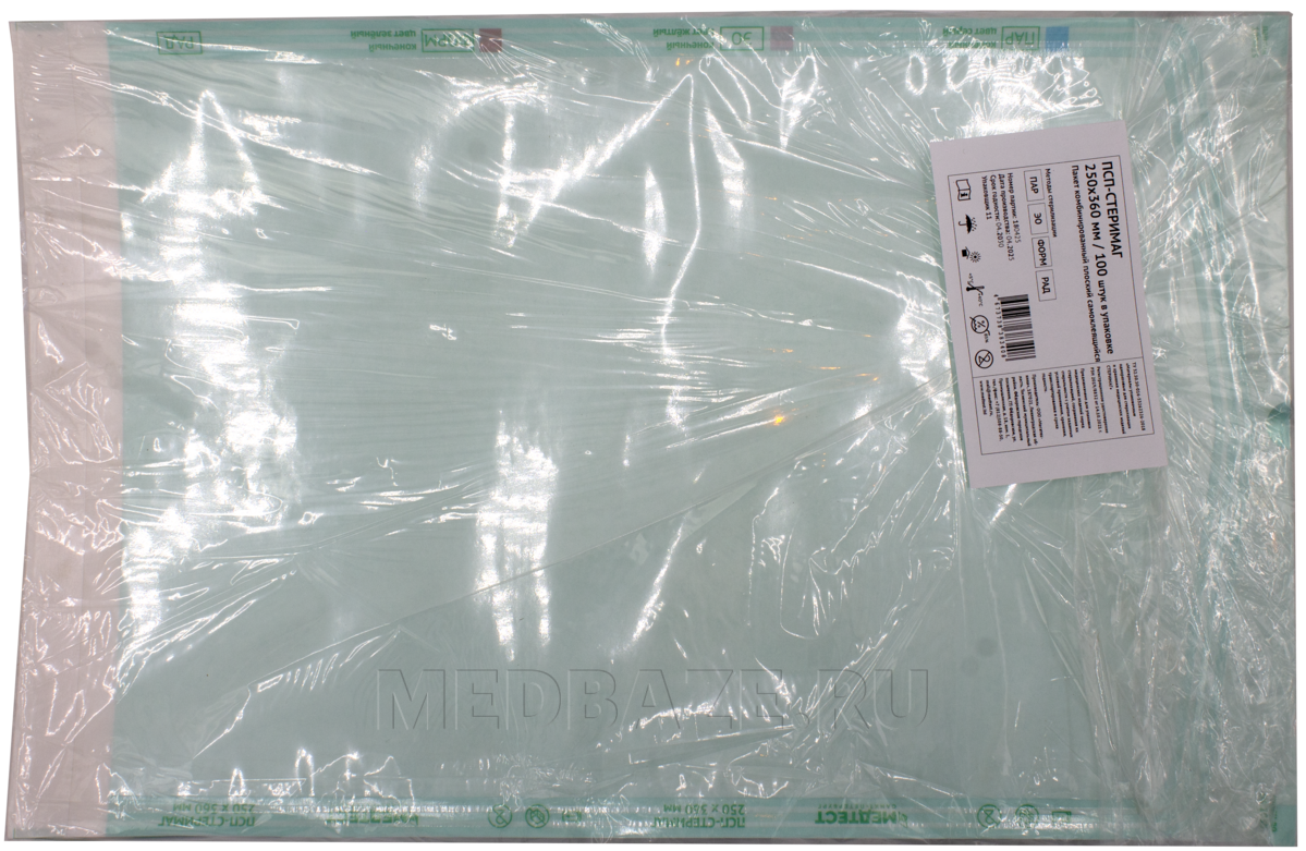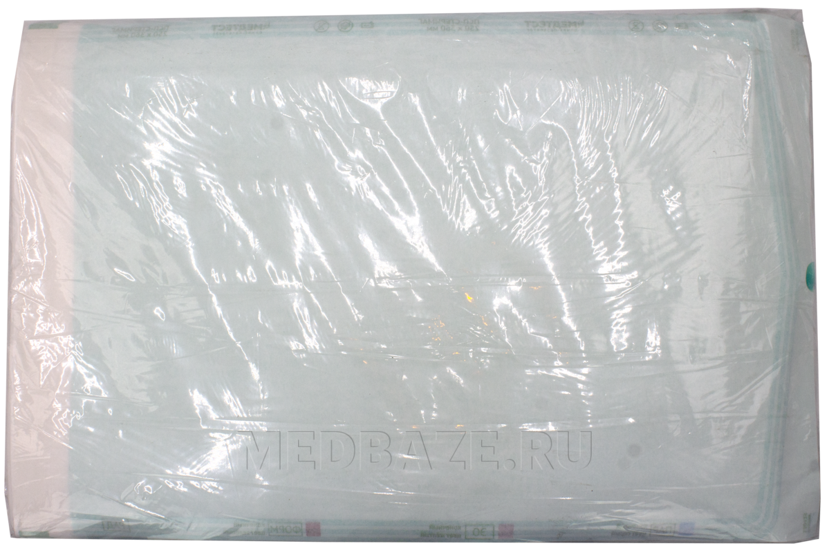Описание: Комбинированный одноразовый стерилизационный пакет, предназначенный для упаковывания и хранения изделий медицинского назначения перед и после стерилизации, представляет собой комбинированную упаковку, состоящую из специальной водоотталкивающей медицинской бумаги с одной стороны и из прочной пленки с другой, соединенных между собой клеевым швом. Прозрачная пластиковая часть позволяет видеть содержимое пакета. На пакеты нанесены цветные химические индикаторы-свидетели процесса 1 класса для определения выдержки в том или ином цикле стерилизации.