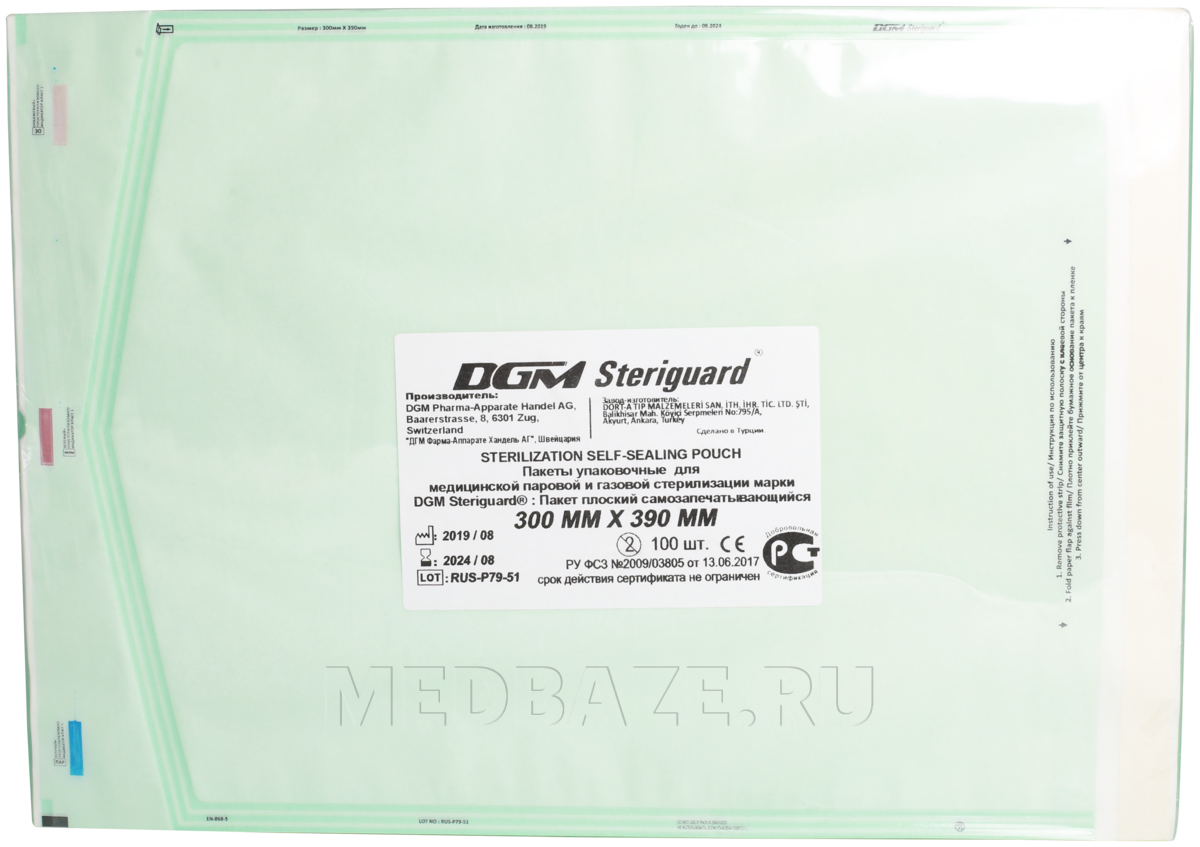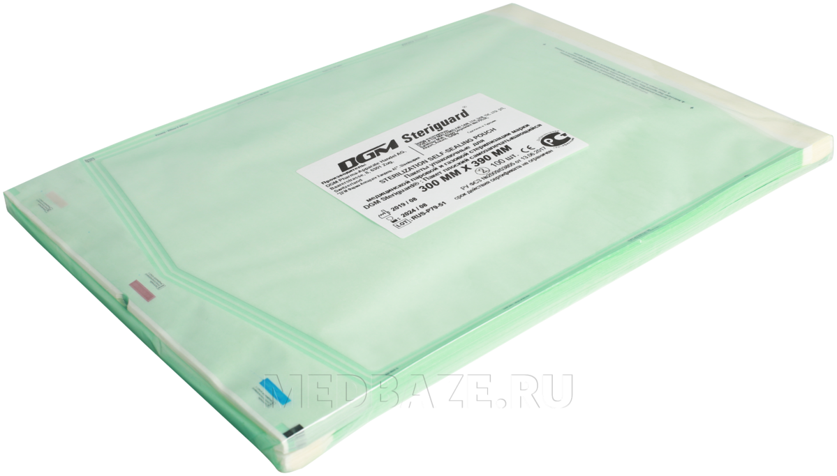 Описание: Одноразовый стерилизационный пакет, предназначенный для упаковывания и хранения изделий медицинского назначения, представляет собой комбинированную упаковку, состоящую из нервущейся безосколочной многослойной пленки-ламината (комбинация полиэстера и полипропилена) и медицинской бумаги. На пакете нанесены химические индикаторы 1 класса, позволяющие отличить простерилизованные изделия от изделий, не подвергнутых стерилизационной обработке.