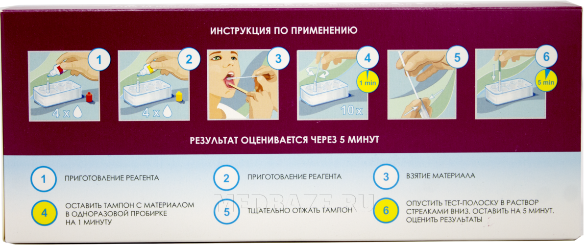 Предназначен для: Диагностики в-гемолитического стрептококка группы А методом иммунохроматографии.