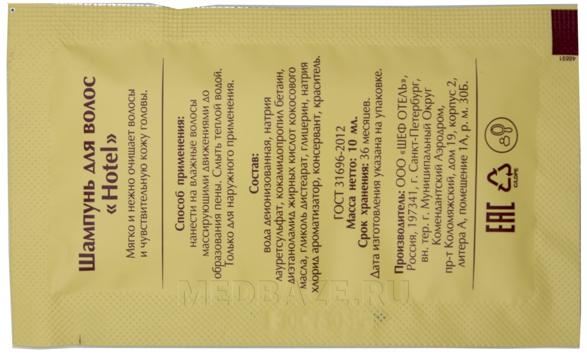 Описание: Одноразовый шампунь Hotel походит для мытья любых типов волос.