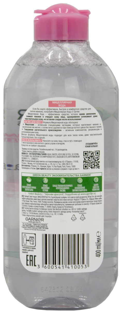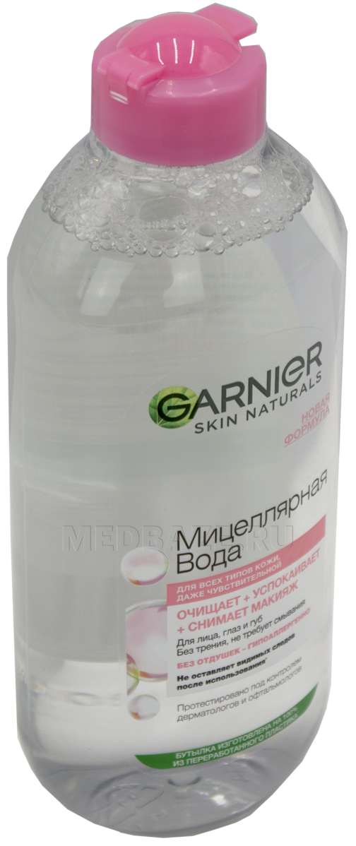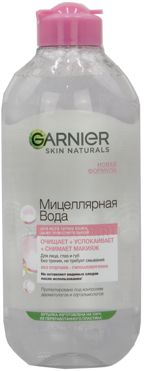 Описание: Мицеллярная вода Garnier Розовая вода очищение+сияние бережно снимает макияж, легко, без трения, справляется с косметикой, очищает и придает сияние даже тусклой и чувствительной коже. Средство обогащено розовой водой, имеет приятный аромат, подходит для любого типа кожи. Не оказывает раздражающего действия на нежную кожу вокруг глаз, не требует смывания. Благотворное действие Мицеллярной воды Garnier Розовая вода очищение + сияние протестировано под дерматологическим и офтальмологическим контролем.
