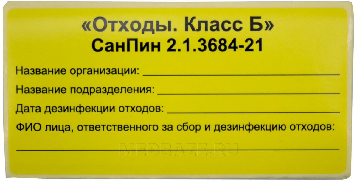 Описание: Бирка-наклейка желтого цвета для маркировки отходов класс Б при их отправке на дальнейшую утилизацию